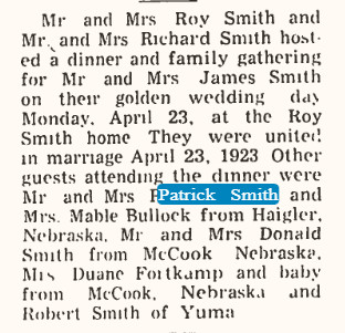 Patrick Michael Smith, born January 13, 1897 in Yuma, registered for WWI in Yuma, reference sister Anna Wolff of Ellington, Missouri.