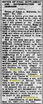 Charles W. Widdifield of Table Rock, Nebraska, Alice Widdifield of 2400 Fenton,