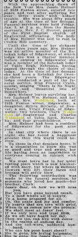 Edgewood, and Jessie Helmer, daughter, of the same address, who died December 31, 1930,