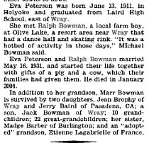 Per Madge (Peterson) Barber's obituary, her sister Eva married Ralph Bowman, Delphia married Delford Bowman.