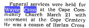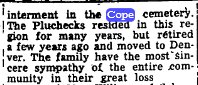 July 18, 1911 he was united in marriage to Christina Elizabeth Wall. She died July 25, 1928 leaving Theodore with five small children to raise. In addition to his own work on the homestead from 1914 to 1923 Mr. Darby walked the five miles to Haigler and worked for Roach Brothers blacksmithing, drilling wells and putting up windmills. He also helped dig the ditches when Haigler put in the water system. In his later years he was helpful wherever he was needed, always ready to help a neighbor in need. Preceding him in death were his wife; parents; two brothers, Charles and Cashmer; a sister Tina and half-sister Agnes; one grandchild, Larry David Cline; one great grandchild, Alan Dean Edeal. Survivors include four daughters, Mrs. Jake (Martha) Walter and Mary Stute, both of Haigler; Tressa Downs of Newport, Ky.; Esther Cline of Arkansas City, Kan.; a son Raymond of Haigler; three half sisters, Flo Miller, Ann Brownridge and Lucille Tuttle, all of Los Angeles, Calif.; six grandchildren and 13 great grandchildren. -------------------------------------------------- Martha Elizabeth (Darby) Walter, 89, died Saturday (April 6, 2002) at Sarah Ann Hester Memorial Home in Benkelman. She was born June 20, 1912, to Theodore and Christina Elizabeth (Wall) Darby on their farm south of Haigler in Cheyenne County, Kan. She attended first through eighth grades at Pleasant Hill country school and helped her parents on the farm. On weekends, she was a housekeeper. In 1929, she went to LeSalle, Colo., to live with her Uncle Charles Darbin and his family. After living with them for two years, she moved to Fort Collins, Colo. She spent a short time with a young family, caring for their son when they moved from Colorado to Glendale, Calif. She later returned to Denver. On June 20, 1943, she married Jacob Walter, Jr. and they made their home on a farm nine miles east and north of Haigler. In the early 1980's, Martha moved to the Rainbow Fountain Park in Benkelman to be near her husband who was a resident at Hester Memorial Home. In August of 1995, Martha was unable to care for herself due to complications of diabetes and became a resident of Hester Memorial Home. She was a member of Zion Lutheran Church in Haigler. She was also a member of the LCW and Clover Leaf Extension Club. She was preceded in death by her parents; husband, Jacob; daughter, Donna Pursley and husband, Neal; and her brother, Raymond Darby. Survivors include her daughter, Shirley and husband, Dobert Gooder of Alda; sisters, Mary Stute of Holdrege, Tressa Downs of Newport, Ky., and Ester Cline of Arkansas City, Kan.; six grandchildren; and 11 great-grandchildren. Funeral services will be Tuesday, 11 a.m., at Zion Lutheran Church in Haigler with the Rev. David C. Rossbach officiating. Interment will follow at the Haigler Cemetery. ----------------------- Buried in Haigler "Cline Larry David 10 Aug 1946 12 Sep 1955 Son of Harry Cline & Esther Darby " --------------------------------------------------------- Raymond T. "Jack" Darby, son of Theodore and Christina, is buried in Haigler # 71511435 i- 1919-1995. ------------------------------------------------ Mary Ann (Darby) Stute died Friday (March 11, 2005). She was born in a sod house in Cheyenne County, southwest of Haigler on Dec. 10, 1913, to Theodore and Christine Elizabeth (Wall) Darby. She attended rural school West-10 in Cheyenne County through the eighth grade. After working on the family farm and helping care for her siblings, she worked for the Porter family in Haigler. On Jan. 19, 1937, she married Alfred Stute at the Lutheran Church near Washington Park in Denver, Colo. They made their home on a farm northeast of Haigler and had three daughters and one son. She lived most of her life in Haigler. Following her husband's death on March 18, 1970, she became an farming and ranching partner with her son, Royce. She received her GED in 1981. She received an Admiralship in the Great Nebraska Navy from Governor Charles Thone. She resided at the Holdrege Memorial Homes in Holdrege after she suffered a stroke in February of 1999. She was active in the choir, women's organizations and Sunday school. She was a teaching leader in the Bethel series bible study. She was active in the Cloverleaf extension club. She was preceded in death by her parents; brother, Raymond Darby; sister, Martha Walter; and grandson, Alan Edeal. Survivors include sisters, Tressa Downs, Newport, Ky., and Esther Cline, Fremont; children, Alfreda Schroeder and her husband Dennis, Bennington, Kathryn Edeal and her husband Russell of Loomis, Royce Stute and his wife Marsha of Haigler and Bonnie Hansen and her husband Tim of Cozad; 10 grandchildren; and 16 great-grandchildren. Services are Tuesday at Zion Lutheran Church at Haigler at 1:30 p.m., with Rev. Chris Farmer officiating. Burial will follow at the Benkelman Cemetery in Benkelman. --------------------------------------------------------- Tressa D. Downs, 97, of Newport, passed away on March 2, 2013 at Baptist Convalescent Center Newport, KY. She was a Sales Clerk with S.S. Kresge Company. She was the President of the Golden Age Club, and the Financial Secretary for the Womens Fellowship at St. John's UCC and the Treasurer for the Monday Club at Grand Towers. She was preceded in death by her husband, Woodrow Downs, her parents Theadore & Elizabeth Darby, a brother Raymond (Jack) Darby, sisters Martha Walter & Mary Stute , a nephew Royce Stute and a niece Donna Pursley. Tressa is survived by a sister Esther Cline, brother-in-law John F. ( Doc) Doherty, a nephew John Doherty, nieces Alfreda (Freddie) Schroeder, Kathryn Edeal, Shirley Gooder and Bonnie Hansen and many great nieces & nephews. No visitation. Funeral Ceremony will be held 10:00 am Saturday, March 9, 2013, at the St. John's United Church of Christ, Newport, Kentucky. Burial will take place in the Vesper Cemetery, Neville, OH |