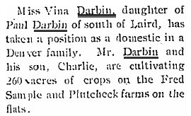 April 27, 1916 "Mr. and Mrs. Chas. Darbin have a little son."