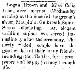 John W. Galbreath of Tulip, Monroe County, Missouri, married Miss Lida F. Brown of Tulip February 15, 1884.