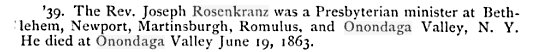 Joseph Rosenkrans is buried in Syracuse # 58820799, with Eliza (Thomson) Rosenkrans dying Nov 23, 1909 # 58821067.