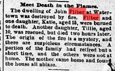 John and two daughters, Katie, 15, and Mathilda (Tillie), 8, died as a result of a house fire in Watertown, South Dakota on August 20, 1896."