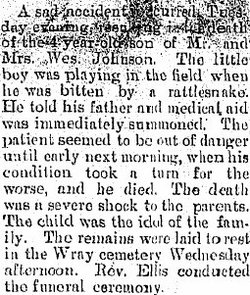 Wesley Johnson 1859-1945 is buried in Wray, #2 64262002. So is Amanda 1859-1946 # 64261550.