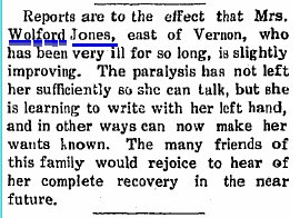 1913 "Miss Lilian Jones arrived from Somerset Kentucky last Saturday. She will teach at the Glendale school house out near Vernon which position Miss Lottie Hitchcok recently resigned."
