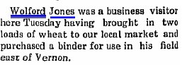 1905 "Miss Pearl and Mr. Morris Hoffaker of 'Summerset' Kentucky are in the county visiting their uncle and aunt, Mr. and Mrs. Wolford Jones out Vernon way, they having stopped here on their way home from the Epworth League convention at Denver."