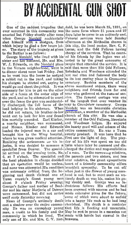 In 1920 Yuma County, George, 28, farming, and his sister Esther Edwards 27 and her husband William Edwards 35 are with him. They have a newborn, Charles Edwards.