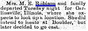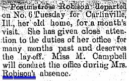 In 1880 Macoupin County, Illinois, Presley Robinson and Elizabeth are both 57, with James A. 27 a trader in stock , Thomas M. 24, a teacher, Lonia A. 21, and Margaret B. 18.Thomas cash-claimed eighty acres in 10, 1S 43W in 1891, and Thomas M. "Robinson" cash-claimed a quarter in 7, 1S 42W in 1892.