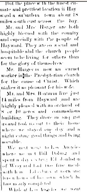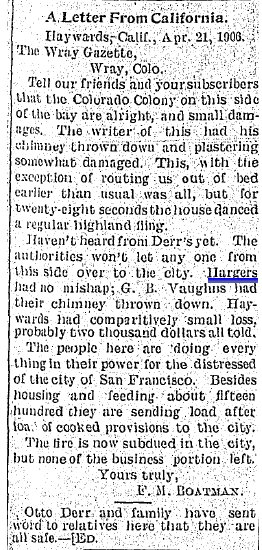1912 Wray "George Vaughn, of Hayward, California, stopped by."
