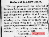 1903 "For Sale: - Household goods for prices see E.H. Vaughn or Mrs. Harriet Click.