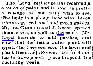 1898 Vernon "Thos Loyd is platering the addition to the store and is doing a good job.