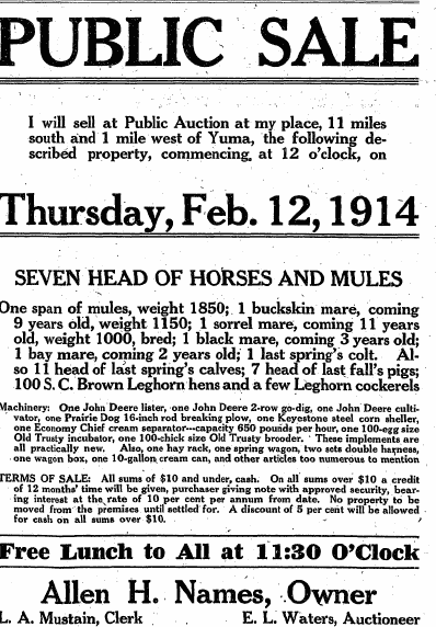 Herbert Names was on the honor roll of grades 1 and 2 of the Yuma school in April 1914.