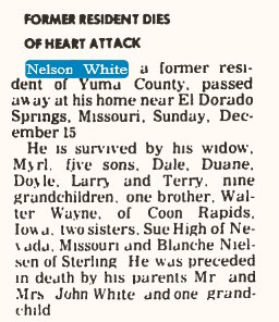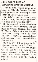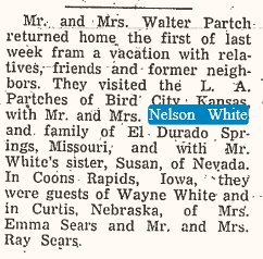 1948 "Mrs. Louis Neilsen's father, John E. White, is visiting at the Nielsen home."