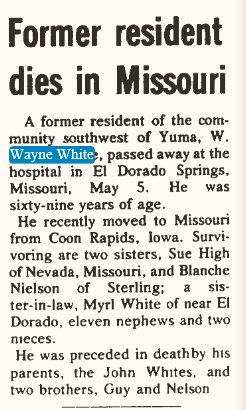 Walter W. White 1906-1975 is buried in Vernon County # 15185778.