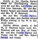 April 1955 "Mr. and Mrs. W.H. Halstead and Mr. and Mrs. Charles Pariset were Sunday dinner guests at the R.G. Pariset home to help Steve celebrate his first birthday.