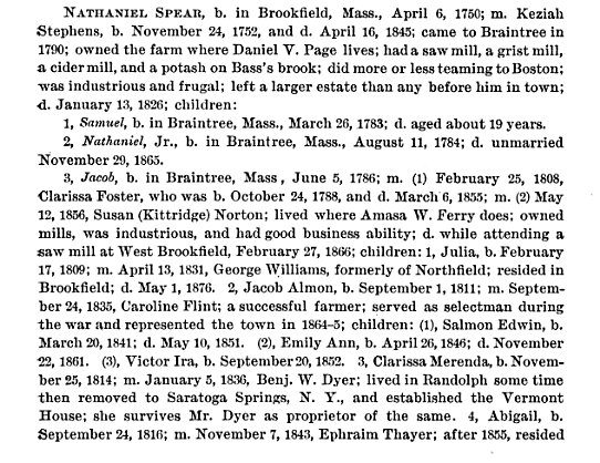 1884 Vermont "Mrs. John G. A. Spear from St. Paul, Minnesota, arrived in town last week for a visit among her friends and relatives, which are many."