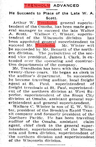 Arthur W. Trenholm married Lattie B. Spear Nov 11, 1884 in St. Paul, Minnesota.