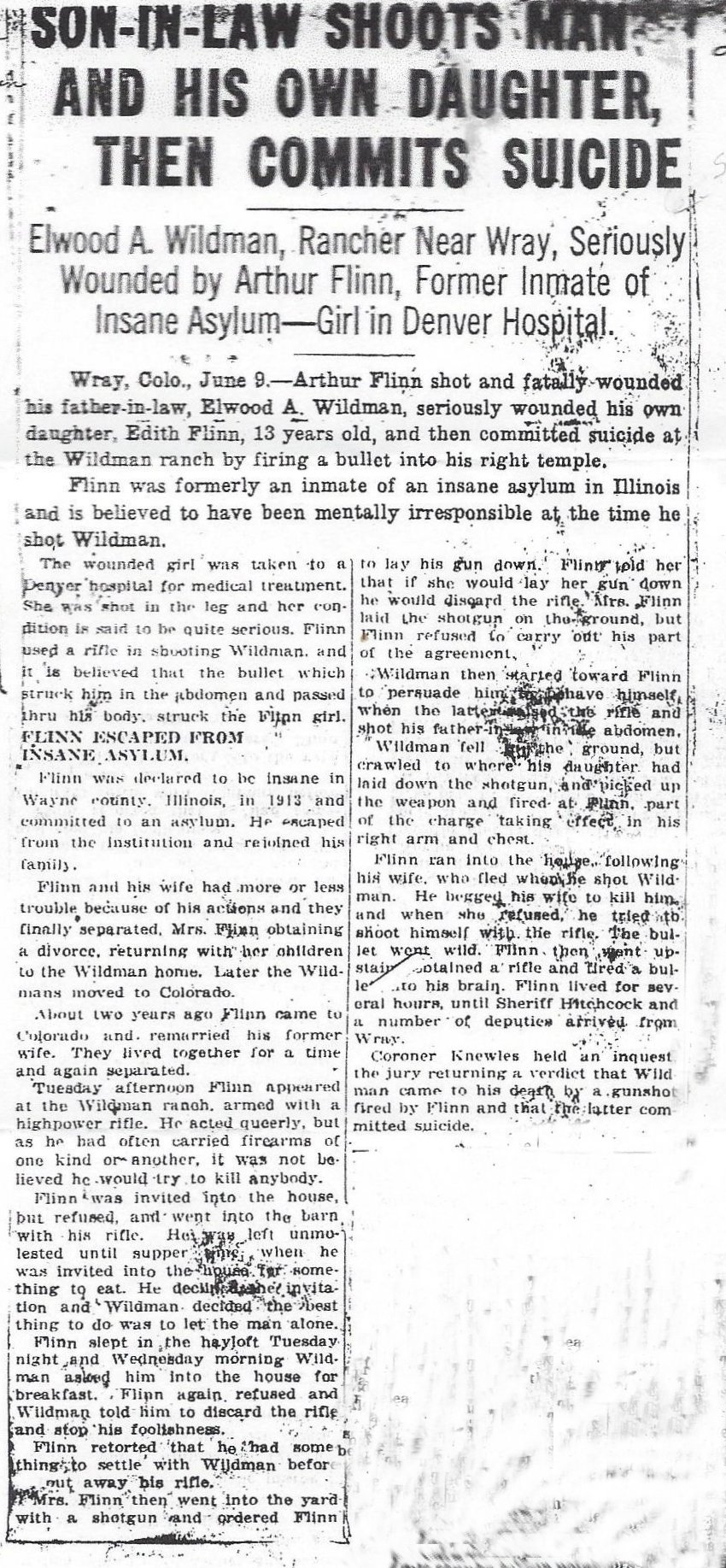 Belva Wildman married Theodore Flinn, and Alverda "Vert" Wildman married Arthur Flinn, per one tree.