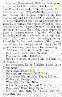 May 11, 1900 "Born - to Mr. and Mrs. L. B. Rife, last Monday, a bouncing baby boy."