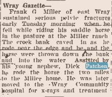 In 1900 Table Rock, Nebraska, Dennis M. "Patchin" is a day laborer, born Sept 1862 in Ohio, with Jennie Sept 1872 Pennsylvania, married nine years. Lester J. was born Sept 1893 in Nebraska.