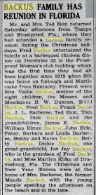 Mrs. Vallie Backus, of Frostproof, Fla., came Friday night to visit the Ted Zions and other relatives and friends.