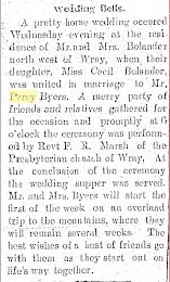 March 1923 "Mr. and Mrs. Percy Byers arrived Wednesday