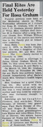 were called to Wray due to the death of Mrs. Byer's mother,