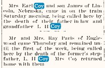 1933 Mr. and Mrs. Earl P. Coy left after a visit for their home at Lincoln ,Nebraska.