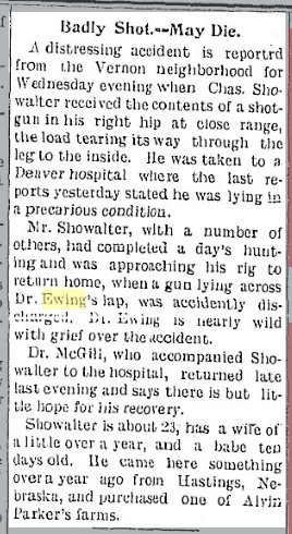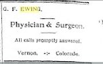 January 1908 "Dr. G. F. Ewing, who until recently was located at Vernon, and who went to Brush not long