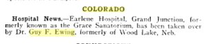 Nebraska Journal of Medicine, 1925 "Dr. G. F. Ewing, for the past year a physician at