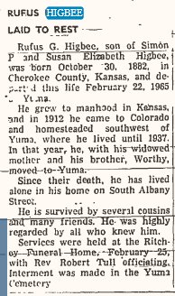 Rufus Glick Higbee 1882-1965 is buried in Yuma # 50790511.