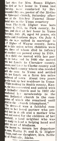 Simon Pierce and Susan E. (Drury) Higbee, Yuma