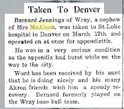 June 1916 Akron "Miss Mary Jennings of Wray,who was a student at Greeley