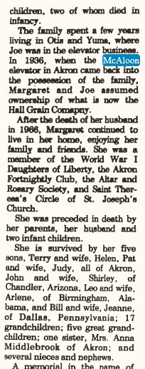 Two infant sons of Terence and Mima McAloon are buried in Akron.