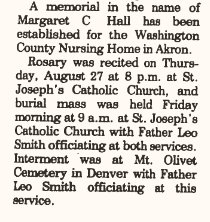 Margaret Cecelia (McAloon) Hall 1892-1981 is buried in Wheat Ridge # 125663038, with Joseph Leo Hall 1894-1966.