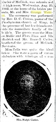 February 1913 "Mrs. Ralph Cutler, who was called home by the serious illhess