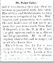 1904 "Ralph Cutler, who has been extra dispatcher in the McCook