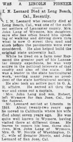 April 7, 1905 "George W. Leonard was born at Delaware,
