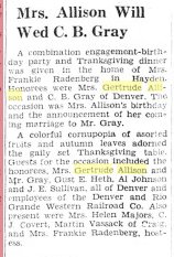 May 1913 "Harry Allison, nephew of George Allison of Vernon precinct who is visiting relatives in this county, was in Wray over Tuesday night, truest of the B. E. Hollingsworth family."