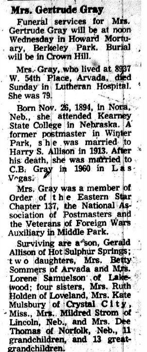 Gertrude Allison Gray, born Nov 26, 1894, dying April 14, 1974,