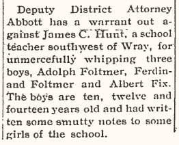 March 11, 1948 "Mr. and Mrs. Vic Foltmer and family have moved from the farm north of Eckley to a place north of Yuma."