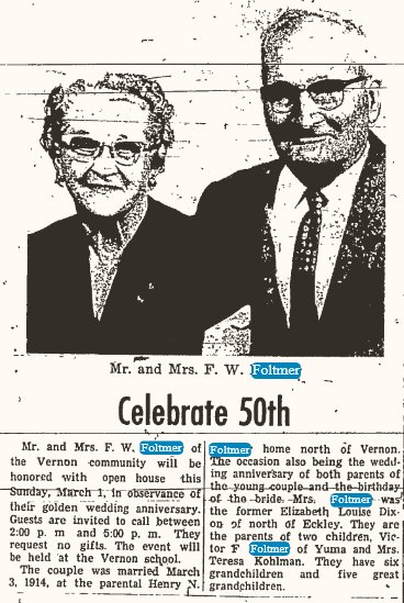 Elizabeth Louise Dixon Foltmer 1895-1974, # 69407162, is buried in Vernon, with Ferdinand 1895-1971.