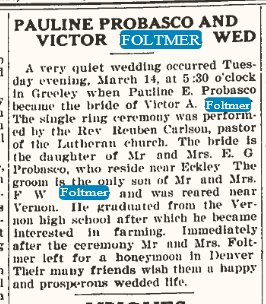"The Henry Foltmer home near Vernon was the scene of the marriage of the son of Mr. and Mrs.