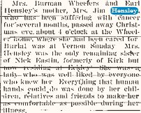 June 29, 1911 "James Hensley and wife took dinner with their daughter, Mrs.Will Williams, Sunday. "