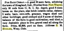 commence housekeeping in Hoagland, in which place and vicinity Mr. Hubler is interested in business."