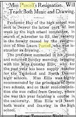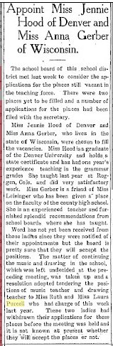 "Miss Laura Purcell has resigned her position on the