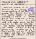 1955 "Mrs. Jennie Burrell of Greeley was visiting with her daughter, Mrs. Homer Wheeler and family and brother, R.G. Eastin and Mrs. Eastin."