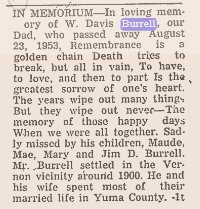 In 1930 Yuma County W. Davis Burrell is 51, Nancy J. 46,